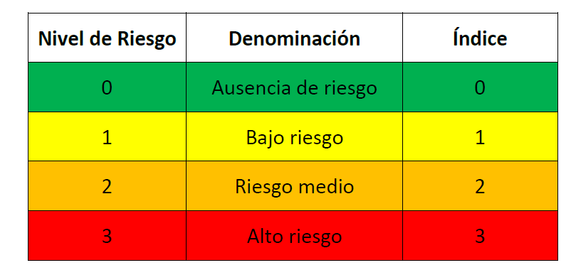 - Intensificación de la información sobre el significado del nivel, y emisión de consejos y recomendaciones sanitarias acordes al nivel.