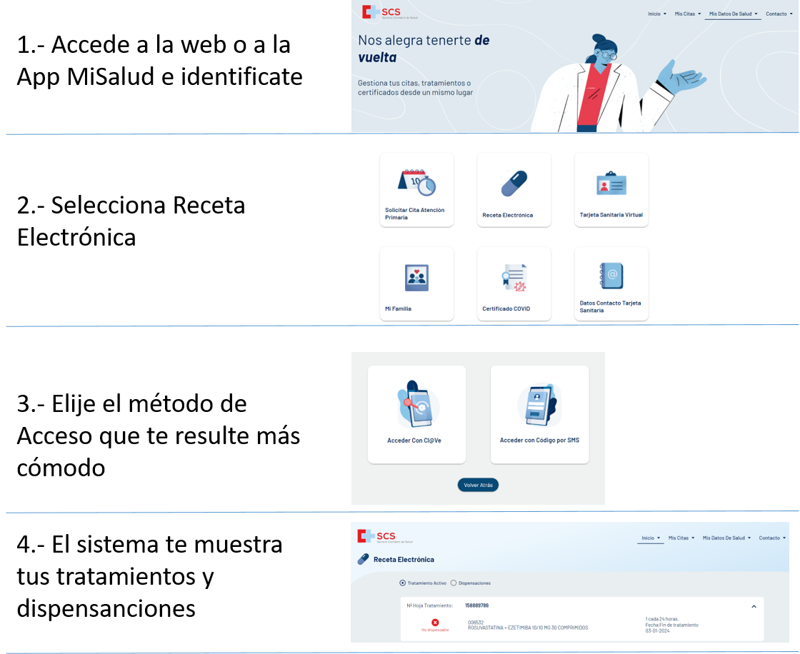 Puede consultar su tratamiento activo de receta electrónica y sus dispensaciones a través del servicio "Mi Salud online" desde la web y desde la app del Servicio Cántabro de Salud.