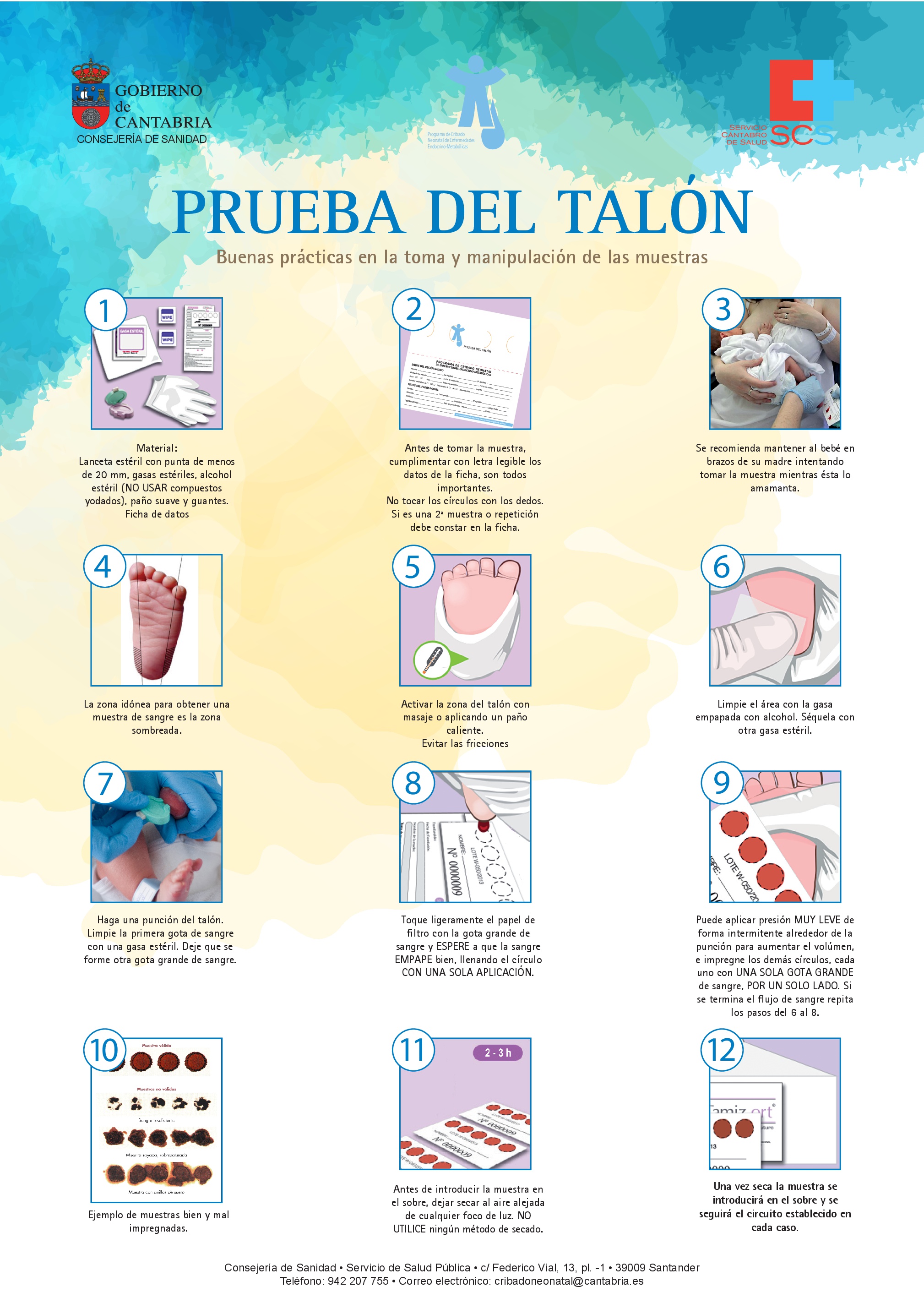 La prueba consiste en la obtención de una muestra de sangre del bebé mediante un pequeño pinchazo en el talón: prueba del talón. La sangre que se extrae se fija en un papel especial que sirve de soporte para enviar la muestra al laboratorio para su análisis.